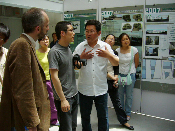 參觀期間,相關專業的同學與黑爾教授進行了互動提問。黑爾教授指出現代科技技術手段與手繪同樣重要的。手繪在思路的形成時期很重要的。電腦則可彌補手繪無法直觀表達的建筑效果的缺憾,彌補手繪不能精確的弊端。