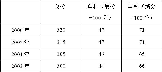 :此表各項分數為2003—2006年報考山東地區各招生單位的復試最低分數線(不含自主劃線的高校)。