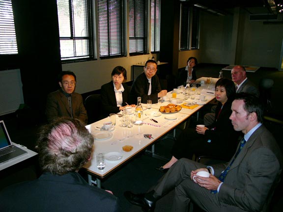、數字藝術與傳媒學院院長王傳東、圖書館副館長彭冬梅、國際交流與合作處郭睿和濟南畫院院長杜華一行六人到澳大利亞斯文伯納科技大學考察訪問。斯文伯納科技大學設計學院院長Allan Whitfield教授、國家設計研究中心主任Roger Simpson博士、國際合作亞洲與中東地區負責人Catherine Chu與我校代表團進行了座談交流。