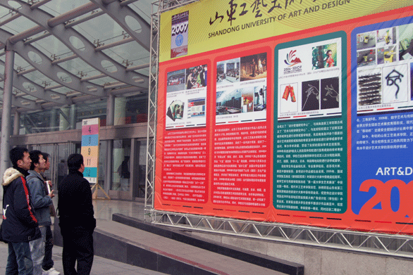 宣傳組工作人員熱情服務、盡職盡責。2月24日、25日,宣傳組趕到舜耕國際會展中心布置會展中心四周宣傳展板、架設并調試室外廣播設備等。