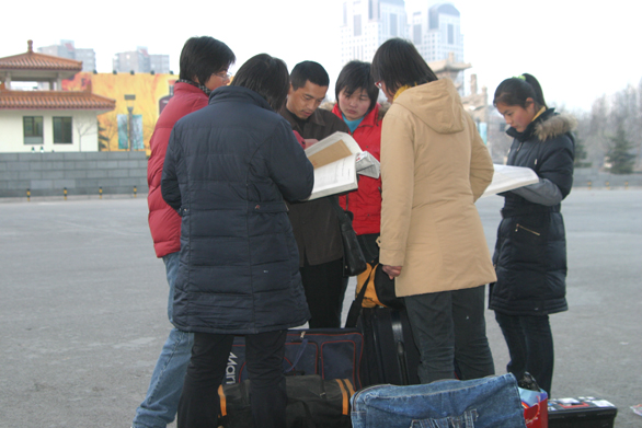 2月27日一早, 在報(bào)名現(xiàn)場(chǎng)入口處,50多位背著行李、畫包的考生吸引了我們的視線。他們有的在仔細(xì)閱讀報(bào)考指南,有的圍在一起討論報(bào)考專業(yè),有的還在忙著吃早餐。記者隨即對(duì)這一組特別的隊(duì)伍進(jìn)行了現(xiàn)場(chǎng)采訪。