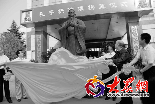 昨天,歷時9個多月,備受世人關(guān)注的孔子標(biāo)準(zhǔn)像在孔子故里曲阜揭幕(上圖)。并首次使用孔子標(biāo)準(zhǔn)像制作的獎?wù)率谟杩鬃咏逃劔@獎?wù)撸鬃幼鳛槁?lián)合國的文化教育“使者”走向了世界。