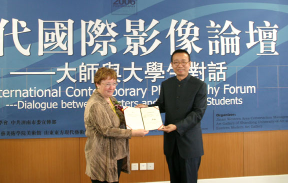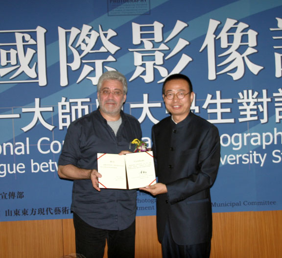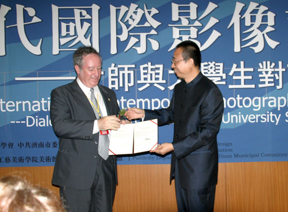 9月25日下午2點,山東工藝美院授聘客座教授儀式在學校貴賓接待室舉行。儀式由副院長李新博士主持。來自美國、比利時、阿根廷、墨西哥、意大利等國的知名攝影師、專家、學者及學校師生約百余人參加了授聘儀式。 受聘為山東工藝美院客座教授的攝影大師有:羅伯特?普雷基(ROBERT PLEDGE)、佩德羅?梅耶爾(Pedro Meyer Richheimer)、尼科爾?比利奧(Billiao NICOLE)、貝爾林吉埃里?尼科拉斯(BERLINGERI?NICOLO)。羅伯特?普雷基是著名國際攝影大師,美國聯系新聞圖片社共同創始人兼總裁,世界著名圖片編輯和策展人,他曾被《美國攝影》雜志評為世界攝影最具影響力百人之一。佩德羅?梅耶爾是著名當代國際攝影大師,墨西哥攝影委員會(Mexican Council of Photography)的奠基人兼主席,拉丁美洲最初的三個攝影討論會的組織者,舉世聞名的攝影專業網站“零域”(Zone Zero)的創建者、策劃者、主管和主任編輯。比利奧?尼克爾是歐洲“無國界攝影組織”創始人之一、副主席,國際攝影組織(FIAP) “國際攝聯優秀攝影家”(EFIAP),“美國攝影學會”(PSA)4星級會員。貝爾林吉埃里?尼科拉斯是國際攝影著名攝影家,阿根廷布宜諾斯艾利斯阿根廷工業大學(UADE)數碼影像教授, “國際攝影藝術聯合會”(FIAP)“國際優秀攝影家”(EFIAP)。 院長潘魯生為四位客座教授頒發了證書并致詞。潘院長致詞時說:山東工藝美院是中國31所藝術高校之一,與歐洲和美國的同類院校相比,她是一所年輕的大學。歡迎四位國際著名的攝影大師加盟山東工藝美院的學術團隊。潘院長認為,當代的攝影藝術應該是科學、文化和藝術的有機結合。國際攝影大師的加盟給攝影藝術教育的發展帶來了更大的空間。山東工藝美院的五年規劃要求打造國際藝術交流的平臺,在2008年將承辦歐洲設計藝術院校聯盟的學術年會同時舉辦第二屆攝影雙年展,希望客座教授和攝影大師再次光臨山東工藝美院。 羅伯特?普雷基(ROBERT PLEDGE)代表受聘客座教授致詞,他表示山東工藝美院是一個非常開放的大學,希望看到這個大學有一個更好的發展。授聘儀式在熱烈的掌聲中結束。