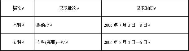 根據山東省招生委員會關于《山東省2006年普通高等學校招生錄取工作意見》(魯招委[2006]9號)中對山東省普通高校錄取時間的安排,我校今年本、專科錄取時間見下表: