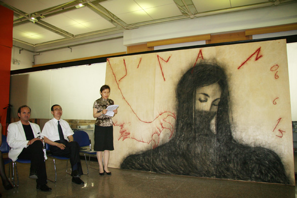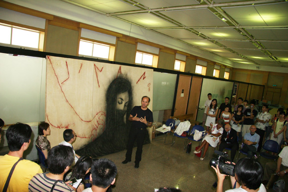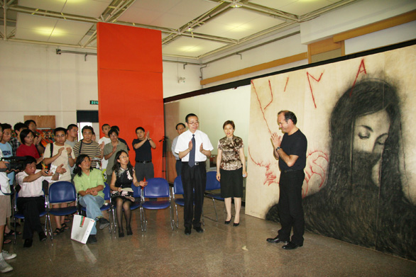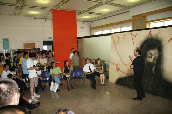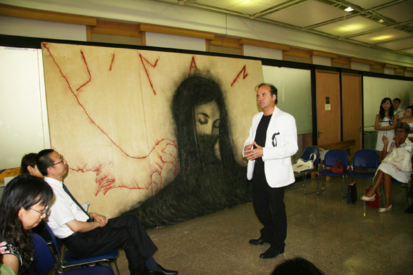 奧馬爾·嘉里亞尼是意大利著名的和最具影響力的當代藝術家之一,被譽為“與達·芬奇相似的藝術家”,有“當代藝術魔術師”的美譽。奧馬爾以素描為主要藝術繪畫語言,尤長木板炭、鉛筆畫,其獨特嫻熟的繪畫技巧,別具一格的藝術語言風格令在場的每個人為之贊嘆。此幅作品是奧馬爾·嘉里亞尼先生于15日下午,現場為我校創作完成的。