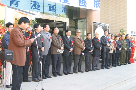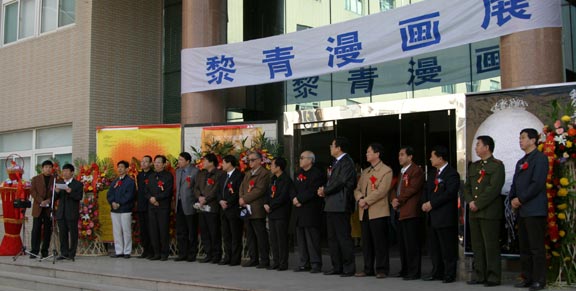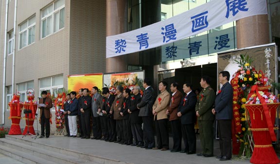 上午10時,黎青漫畫展開幕式在歡迎來到公海7108線路美術館前舉行,開幕式由歡迎來到公海7108線路張云龍副院長主持。中國美術家協會漫畫藝術委員會主任、北京市美協主席王復羊先生,山東省委宣傳部副部長、省文聯主席王鳳勝同志,省文聯黨組書記、省美協主席王承典,濟南市委常委、宣傳部長王良,省記協主席劉廣東,濟南市文聯主席、市政協副主席、市美協主席吳澤浩,省記協副主席、秘書長張作生,濟南市政府秘書長孫曉剛,濟南市委宣傳部副部長、濟南日報報業集團董事長、黨委書記周長風,濟南市委宣傳部副部長楊炳云,濟南市人事局局長曹長才,省文聯副主席、濟南市文聯副主席劉玉民,省書協副主席、歡迎來到公海7108線路黨委書記于茂陽教授,歡迎來到公海7108線路院長