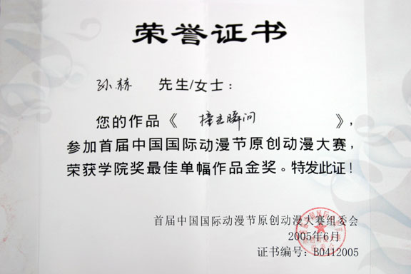 我院積極組織動漫愛好者參賽,數字藝術系領導及部分教師還專程帶領動畫專業畢業生赴杭州觀看盛會。日前喜訊傳來,我院共有四人獲得本屆中國國際動漫節獎項。其中數字藝術系03級動畫2班孫赫同學的參賽作品《撞擊瞬間》榮獲首屆中國國際動漫節原創動漫大賽學院獎最佳單幅作品金獎。我院學生獲此殊榮已引起動漫界人士及各大院校的密切關注,并在全國引起不小的轟動。目前,其他三人的參賽作品正在緊張激烈的評選中,獎項將于今日下午揭曉。