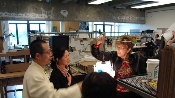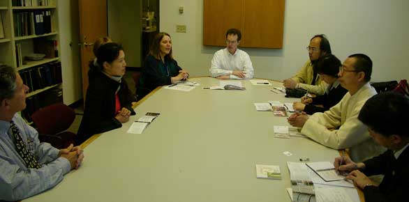 院長一行在主人的陪同下參觀了建筑與藝術學院圖書館、建筑系、藝術系和藝術史系,參觀了學院的金工車間、纖維藝術車間、染織車間、雕塑工作室、建筑材料工作室和陶瓷工作室等。下午,代表團一行在金.歐康奈爾教授和譚穎教授的陪同下來到俄勒岡大學伯特蘭中心進行了訪問。中心主任,建筑師詹姆斯.皮提納利教授向客人介紹了該中心的情況,伯特蘭中心是俄勒岡大學在伯特蘭建立的一個機構,主要為學生提供與政府和企業的聯系。目前中心、有85名學生,主要是研究生,目前該中心在中國上海和天津等地都承接了一些建筑項目。當天下午,代表團還在伯特蘭市參觀了該市的藝術博物館和密歇爾·費弗爾德教授的建筑工作室。