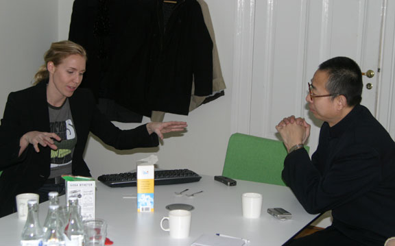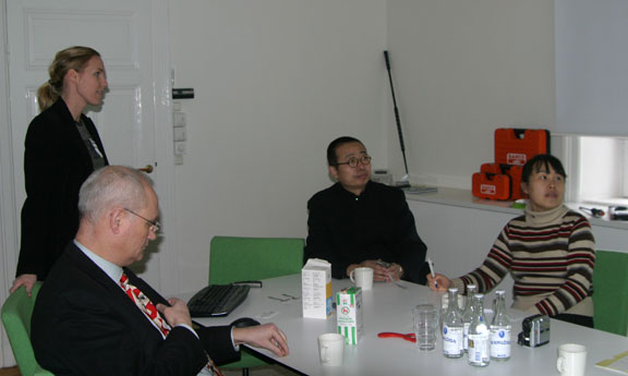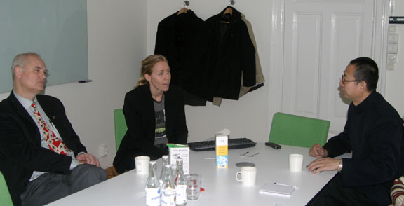 和外事辦副主任康健在瑞典皇家工學院工業設計系康拉德 .鹿特羅普先生和瑞典皇家工學院國際管理和教育中心何穎芳女士的陪同下訪問了瑞典一家生態設計公司,埃爾格諾米設計公司。該公司工業設計師安娜.卡萊爾女士熱情接待