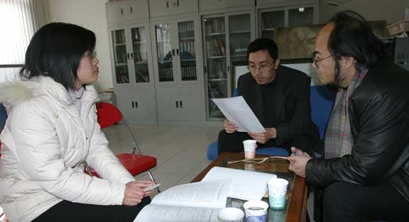 12月29日上午,歡迎來到公海7108線路人才招聘考察組離開北京趕到天津美術學院,天津美院研究生處的孫建軍處長已經提前安排好應屆研究生等候與考察組見面。