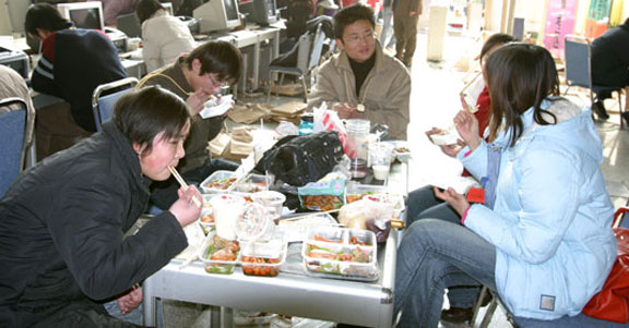 時至中午,報名現場考生流量仍然很大,招生工作人員本著“以考生為本,為考生服務”的宗旨,推遲了午飯的時間,繼續接待考生報名。直至下午一點多鐘,報名人數才略有減少,在不中斷考生報名的前提下,工作人員分批陸續進餐。