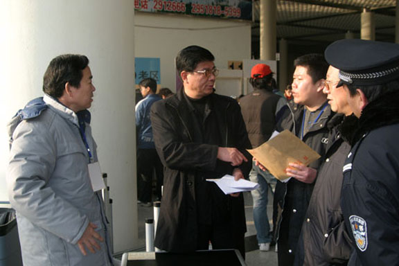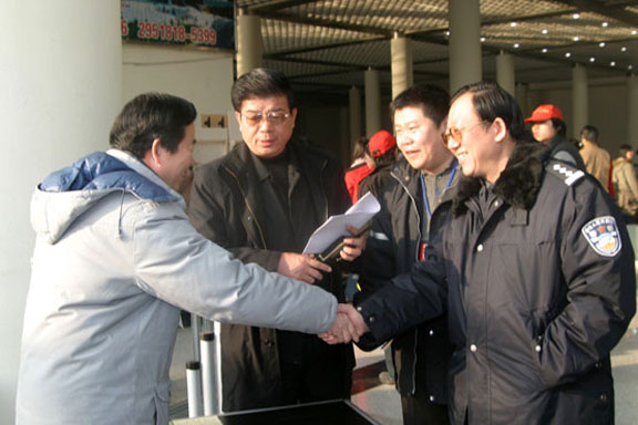 19日下午,濟南市公安局督察長吳玉瑩、督察隊隊長梁振黎等一行10余人到報名現場對安保工作進行現場查看。
