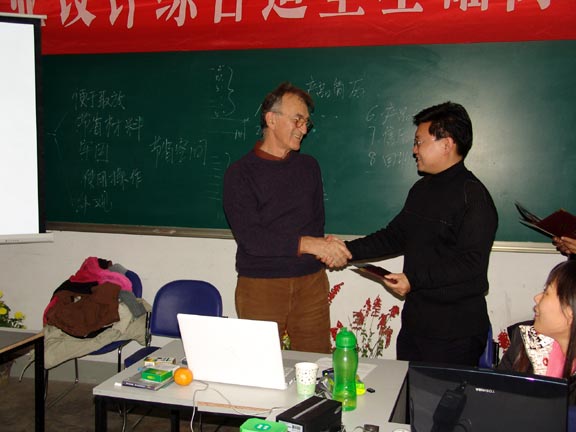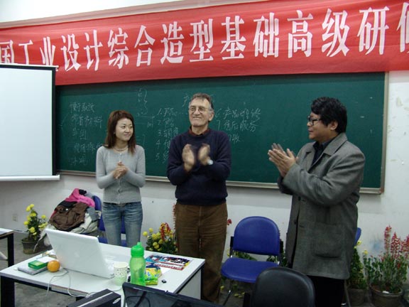 11月12日下午16:30,工業系在研修班教室舉行中國工業設計造型基礎高級研修班的畢業典禮。畢業典禮由工業系主任王智教授主持并致辭。畢業典禮上王智教授對克勞斯?雷曼教授一周來的嚴謹而又富有成效的講學工作表示誠摯的謝意。王智教授說這次研修班(workshop)的練習內容豐富多彩,學員們收獲頗豐,并表示希望學員們能將這次研修班所學到的德國工業設計理念、內容、方法帶回各自院校,大膽探索、創新,全面推進中國工業設計的教學和實踐工作。王智教授致辭完畢,雷曼教授致辭并為本次研修班17位學員頒發結業證書。雷曼教授說他對本次歡迎來到公海7108線路主辦的研修班工作非常滿意,并表示期待有機會再次來到中國為推動中德兩國的教育和文化交流作出貢獻。