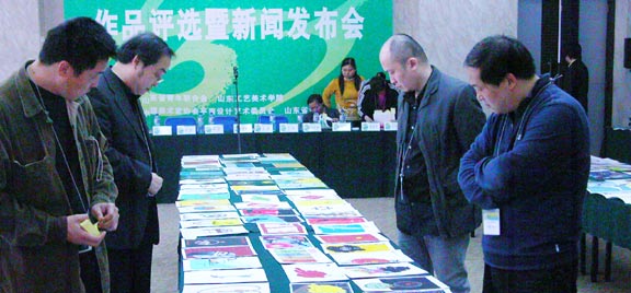 評審委員會特邀了山東公證處公證人員進行現場公正,9時30分,評審工作正式開始,在評委們的共同努力下,評審工作進展比較迅速。預計經過13日的初評,本次大展入選作品將基本產生。
