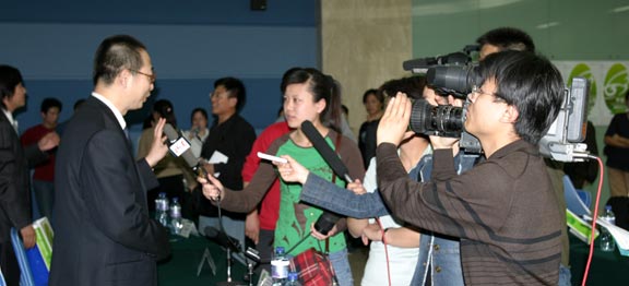 在記者的強(qiáng)烈要求下,大賽金獎(jiǎng)作品提前與大家見(jiàn)面,潘院長(zhǎng)和評(píng)委委員苗登宇、石增泉對(duì)金獎(jiǎng)作品進(jìn)行了簡(jiǎn)單的介紹,引起了媒體廣泛關(guān)注。