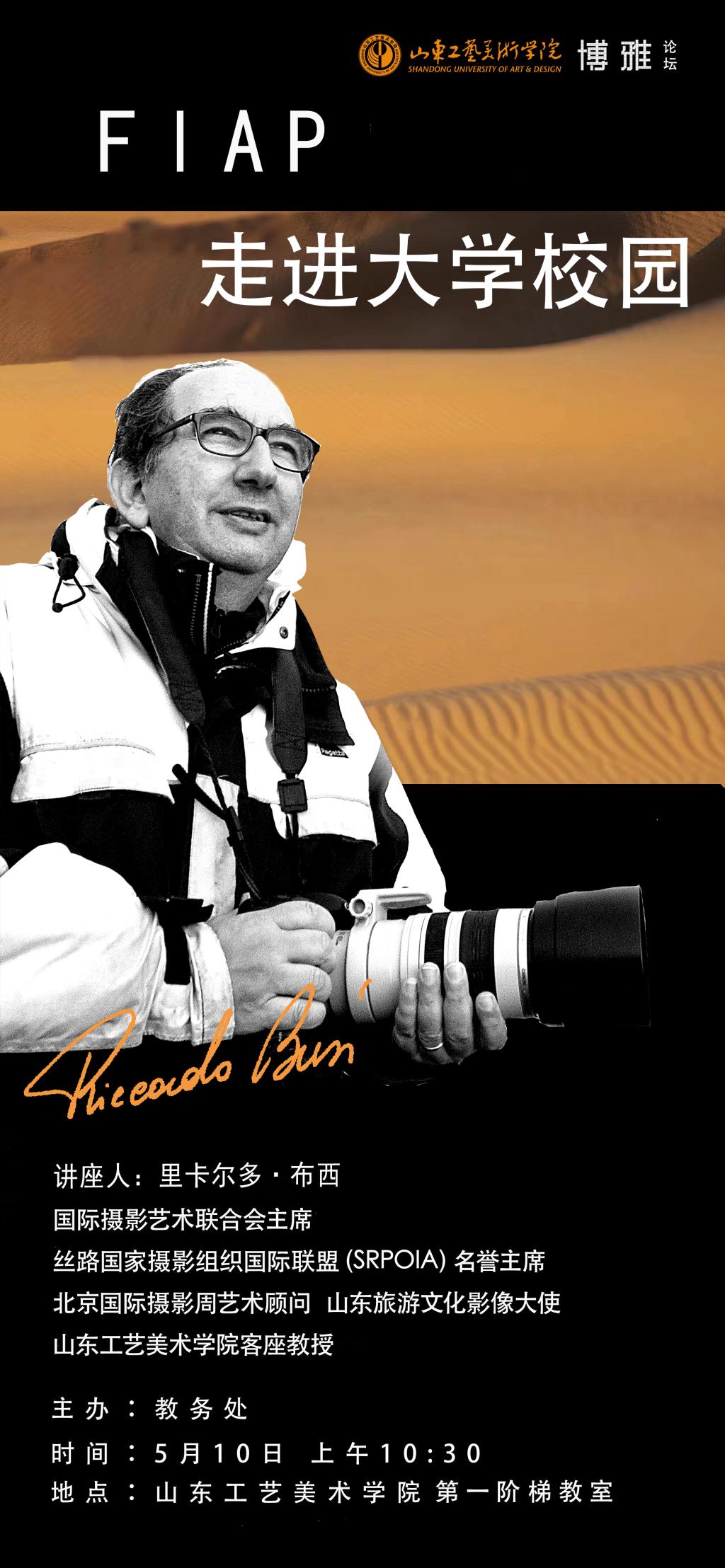 5月10日,教務處舉辦博雅論壇系列活動,由世界著名攝影大師、國際攝影藝術聯合會主席里卡爾多·布西帶來題為《FlAP走進大學校園》的精彩講座,教務處處長顧群業主持本次講座活動,攝影藝術、視覺設計、數字藝術等多領域專業學生積極報名參加講座,與世界攝影大師共同探索視覺藝術的多樣表達。