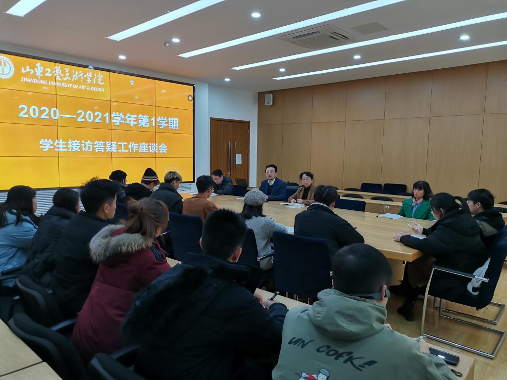 為進(jìn)一步加強教風(fēng)與學(xué)風(fēng)建設(shè),提高我校本科教學(xué)質(zhì)量,11月24日下午,教務(wù)處在長清校區(qū)第三會議室組織召開2020-2021學(xué)年第1學(xué)期學(xué)生接訪答疑工作座談會。學(xué)校9個二級學(xué)院2019級、2020級學(xué)生代表,教務(wù)處處長孫磊、財務(wù)處處長胡紅宇、教務(wù)處副處長李蓉及教務(wù)處、財務(wù)處的相關(guān)工作人員參加座談。