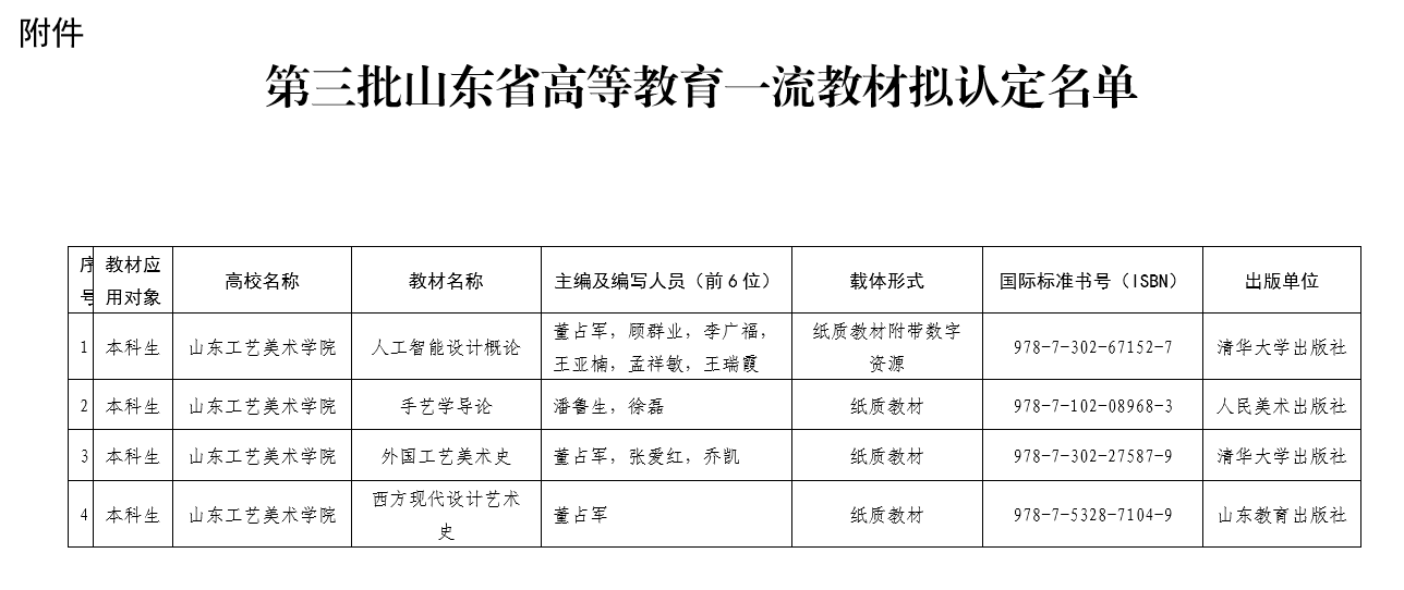 根據(jù)《山東省教材委員會辦公室關(guān)于開展第三批山東省高等教育一流教材評選和第二屆全國教材建設(shè)獎全國優(yōu)秀教材(高等教育類)推薦工作的通知》有關(guān)要求,山東省教育廳組織開展了相關(guān)教材遴選評審工作。經(jīng)高校申報、專家評審等程序,現(xiàn)將第三批山東省高等教育一流教材擬認定名單予以公示。