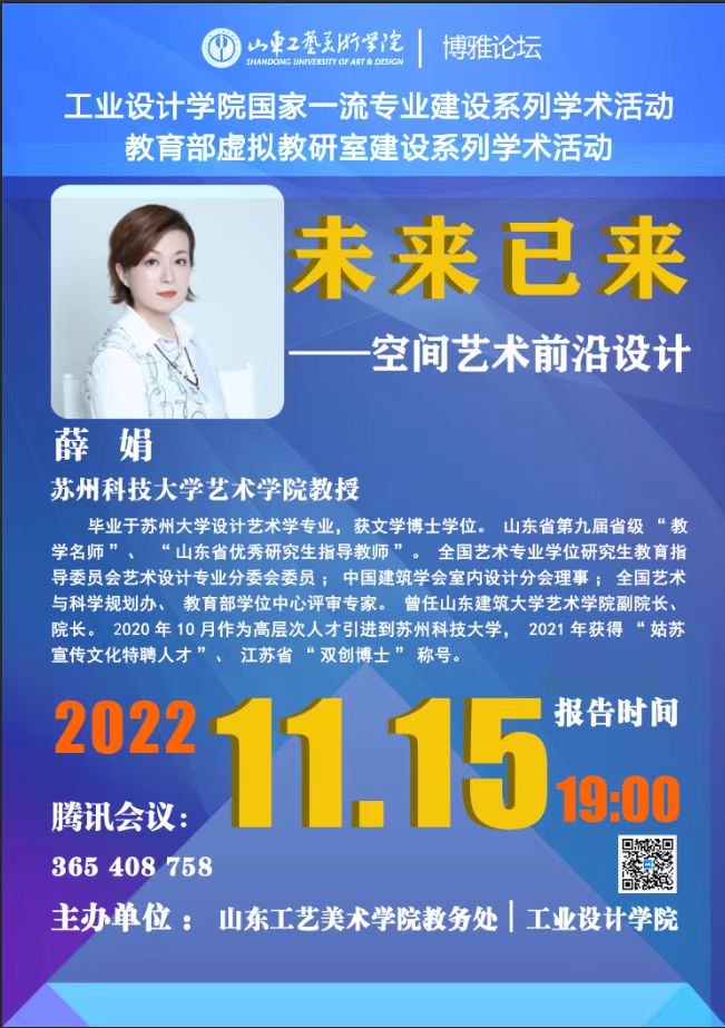蘇州科技大學藝術學院教授,設計學學科帶頭人。畢業于蘇州大學設計藝術學專業,獲文學博士學位。山東省第九屆省級“教學名師”、“山東省優秀研究生指導教師”。全國藝術專業學位研究生教育指導委員會藝術設計專業分委會委員;中國建筑學會室內設計分會理事;全國藝術與科學規劃辦、教育部學位中心評審專家。曾任山東建筑大學藝術學院副院長(2012-2016年)、院長(2016-2020年)。2020年10月作為高層次人才引進到蘇州科技大學,2021年獲得“姑蘇宣傳文化特聘人才”、江蘇省“雙創博士”稱號。