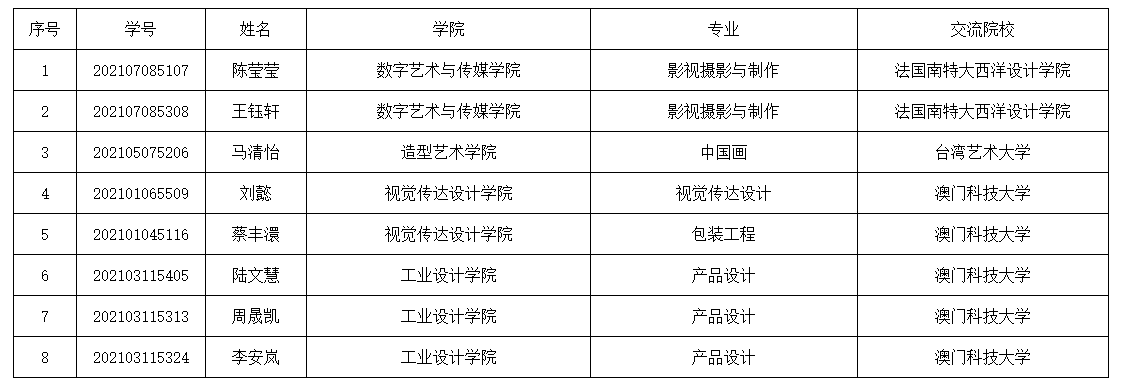 2024年春季本科生赴國(境)外交流學生名單公示