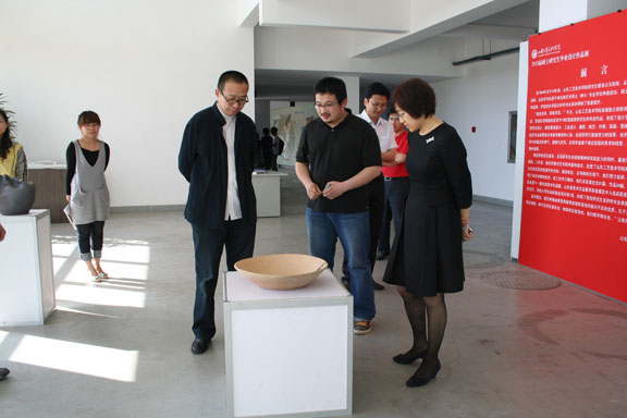 2010年5月19日下午,潘魯生院長和李新副院長在長清校區圖書館一層展廳參觀指導了2010屆碩士研究生畢業設計作品展。本次展出的是陶藝、纖維、攝影專業6名研究生的80余件畢業設計作品。此后,還將分三次分別展出視覺傳達設計、建筑景觀設計和工業設計、美術學專業13名研究生的畢業設計作品,整個展覽將持續1個月左右的時間。潘院長仔細觀看了研究生的每一件畢業設計作品,并與研究生就學習、畢業創作及學位論文寫作等方面做了交流,在陶藝、纖維家紡和攝影的研究方法和設計創作上提出了自己的觀點,在場師生受益匪淺。潘院長表示,研究生階段的學習是在本科基礎上的系統和深入,研究生需涉獵不同專業領域,在材料、工藝、市場、文化等方面形成知識體系,掌握學術科研方法,在設計理念和表現技法上有突破和提升,要以小見大,學會做項目、做科研、做市場,這才是我們進行研究生教育的目的。潘院長指出,陶藝是一種集手藝和歷史文化淵源于一身的藝術表現形式,作為研究生,要深刻挖掘其文化內涵,在此基礎上利用至少半年時間深入制陶現場進行創作實踐。家紡設計不只是圖案創新,而是要解決和生活相關的一系列問題,研究生要深入企業,從家紡產品的材料、圖案、風格、功能、市場需求等方面思考和開發新產品。作為當代影像藝術,攝影作品要重視思想性,彰顯自然人文色彩,敢于打破傳統觀念,追求表現形式的多元化。潘院長強調,設計不僅僅是藝術層面上的創新,還要研究產品背后的目標、使用人群的生活方式和社會文化背景,了解社會、市場和生活需要及行業現狀,注重產品功能,只有進行充分的市場調研才能設計出成功的產品。研究生要多關注社會課題,將思考維度放寬和深化,不拘泥于固有形式,做出引領社會和市場前沿的好作品,帶動社會設計創新水平的提高。潘院長在參觀過程中勉勵研究生,要與時代同步,與社會需求接軌,注重創新,提高實踐能力,積極主動參與社會文化藝術事業建設,充分體現基于學術研究之上的高水平的設計理念和綜合設計水準。最后,潘魯生院長和李新副院長對研究生的畢業設計和努力精神給予肯定,同時也對進一步辦好展覽提出了建設性意見。