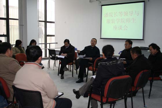 、丁炳堂、張振羽等來到服裝學院,與師生代表就教學評建工作有關問題進行座談交流。服裝學院院長徐思民、黨總支書記扈國珍及師生代表30余人參加座談。