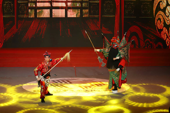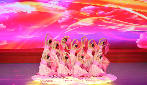 在悠揚的音樂聲中,晚會進入了第二篇章“家·年華”。師生共唱《贊贊新時代》,節目與服裝表演相結合,以學校特色賀母校之誕;舞蹈《有一種青春叫支教》以昂揚的旋律再現了一代代工美人服務社會的精神品格;舞蹈《Peace and love》用熱情表達了對母校培養的感謝和對母校45周年華誕的祝福;學校合作單位、山東省文化藝術學校帶來的戲曲聯唱將整個舞臺氣氛推向了高潮。