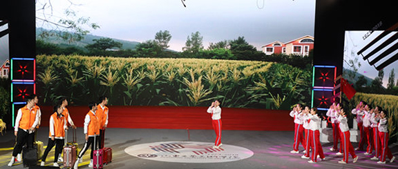 伴隨著動感活力的音樂,晚會迎來了第三篇章“家·天下”。歌曲《綠葉對根的情義》以及工美學子們給母校發來的視頻祝福,將工美學子對母校的感恩之情淋漓展現,五湖四海的工美人跨越千山萬水,共同為母校45歲生日獻上一份特別的生日祝福;由學校老師帶來的小合唱《中國夢》、服裝學院舞蹈班的女生舞蹈《雨打芭蕉》更是展現了學校45年來風雨兼程、同舟共濟、砥礪前行的頑強精神。晚會在《幸福新起點》的歌聲中圓滿結束。