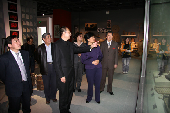 在美術館,嬴楓一行參觀了我校近兩年承辦的大型展覽、交流、學術活動資料展、“2005-2007屆畢業生優秀作品展”、“校外實習基地教學成果展”、“漢畫像石拓片 年畫館藏展”等展覽;在博物館,參觀了刺繡館、民藝博物館和孫長林藝術館;隨后,考察了我校綜合實驗中心的印刷、書籍裝幀設計、包裝技術等實驗室;在特種工藝實驗中心考察了染織工作室、玻璃藝術工作室、首飾工藝工作室等實踐教學場所;在數字藝術與傳媒試驗中心考察了攝影實驗室、動畫綜合實驗室和影視多功能演播廳等場館,并觀看了我校宣傳片《設計—引領生活》。