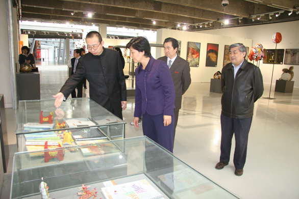 潘魯生,黨委副書記郭兆志,副院長李新、刁在祥,院長助理、辦公室主任王立果陪同嬴楓一行先后考察了美術館、博物館、綜合實驗中心、特種工藝實驗中心和數字藝術與傳媒實驗中心。