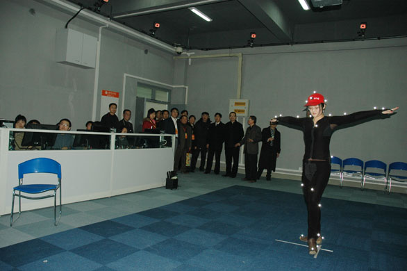 專家先后考察了計算機輔助設計實驗室、CG實驗室、攝影棚、黑白暗房工作室、動畫綜合實驗室、動作捕捉實驗室、多媒體技術實驗室、影視演播多功能廳,對該實驗中心先進的設備、良好的環境給予了高度評價。在動畫綜合實驗室,評估專家組組長、清華大學美術學院楊永善教授認真觀看了學生做的動畫形象作品——瓷杯和布偶,并向學生詢問了小瓷杯上動畫形象和布偶玩具的制作流程和方法,學生很熱情地向專家們作了解說。在動作捕捉實驗室,專家們觀看了同學們現場作業的精彩場面,對先進設備在教學中的應用,給與了充分肯定。在多媒體技術實驗室,當看到我校動畫專業的學生正在使用我校老師編寫《網絡動畫設計》教材上課時,評估專家組組長楊永善教授幽默地說:“你們學校教材出的又好又多,可以開個出版社了!”