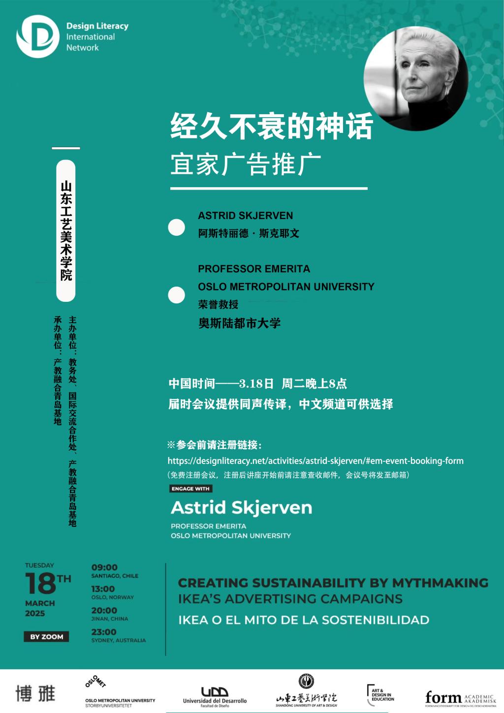 講座注冊鏈接(注冊后請留意郵箱,會前會議號會發(fā)至郵箱):https://designliteracy.net/activities/astrid-skjerven/