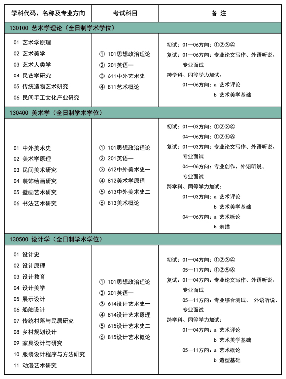 二、全日制藝術碩士專業學位研究生(MFA)招生專業目錄和初試參考書目