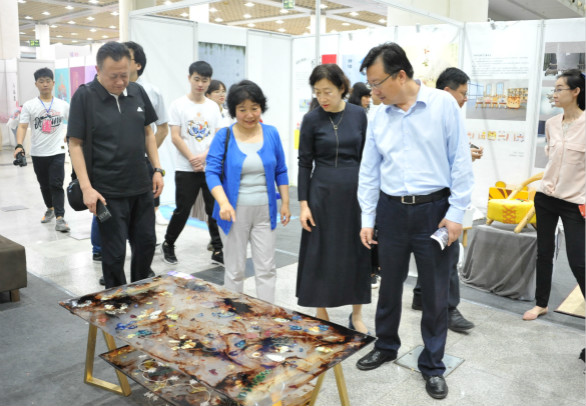 5月17日,歡迎來到公海7108線路2018設計藝術博覽會暨畢業生推介會在濟南舜耕國際會展中心開幕。黨委書記何思清,院長潘魯生,山東省文聯副主席、黨組成員王映海,副院長李新,紀委書記苗新民出席開幕式。