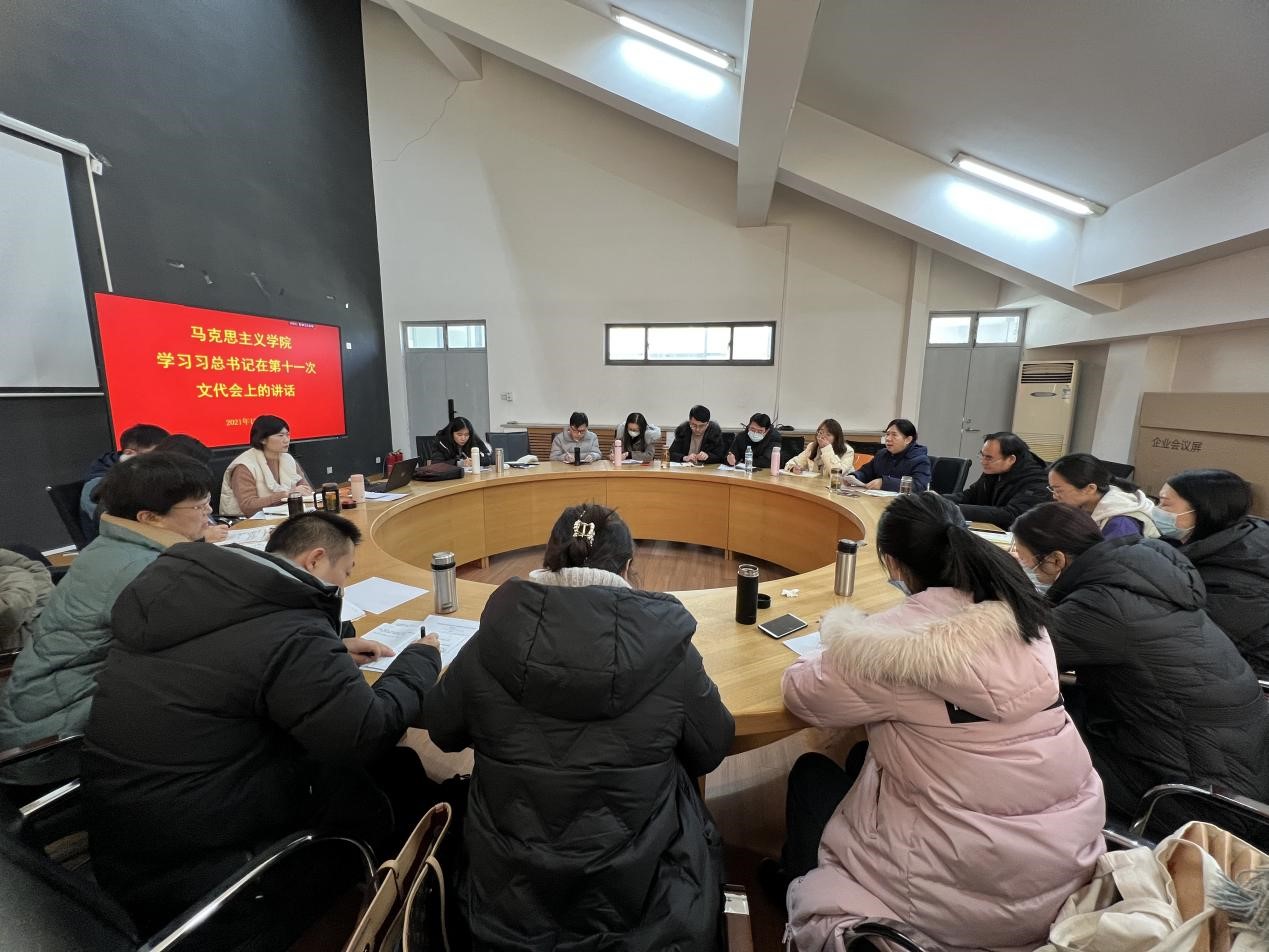 2021年12月29日下午,馬克思主義學院教職工在長清校區第二會議室開展集體學習,學習習近平總書記在中國文聯十一大、中國作協十大開幕式上的重要講話。學習由黨總支副書記任偉清主持。