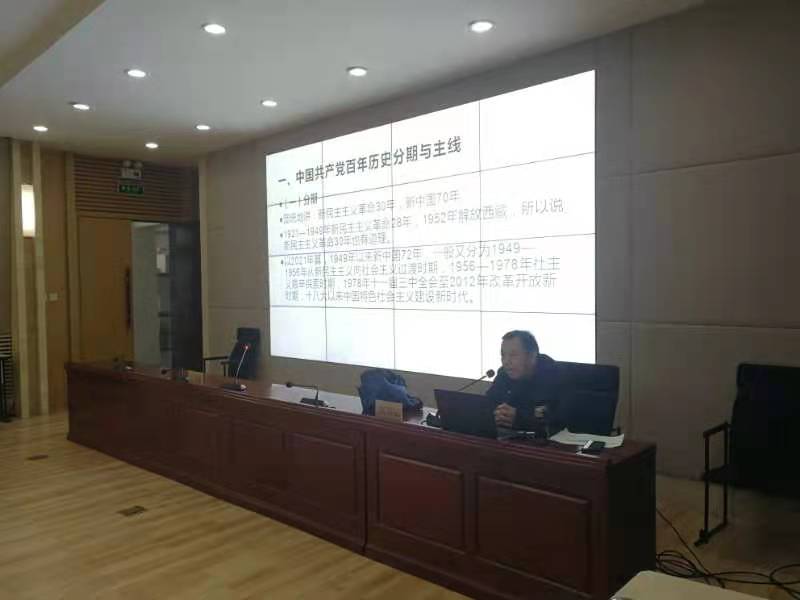 作為“喜迎建黨一百周年華誕 服務(wù)國(guó)家為人民而設(shè)計(jì)”主題創(chuàng)作活動(dòng)的一部分,為幫助參與創(chuàng)作的師生深刻理解黨史,更好地知黨愛(ài)黨頌黨,12月29日下午,學(xué)校在長(zhǎng)清校區(qū)第一會(huì)議室舉辦“喜迎建黨一百周年華誕 服務(wù)國(guó)家為人民而設(shè)計(jì)”主題創(chuàng)作中共黨史報(bào)告會(huì)。山東師范大學(xué)馬克思主義學(xué)院博士生導(dǎo)師張福記教授受邀作報(bào)告。全校近二百名師生聆聽(tīng)報(bào)告。報(bào)告由思想政治理論教學(xué)研究部主任丁炳堂主持。