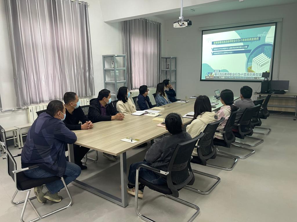 活動以觀看視頻的方式進行,全體教職工共同觀看了師德師風建設微視頻《與你同在》、《堅持與信念》、《新時代高校教師職業行為十項準則》等正面宣傳片,引導教職工了解職業行為準則,向師德先進學習,并通過《教育部曝光8起師德失范典型案例》、《教育部曝光違反教師職業行為十項準則典型案例》反面新聞報道,開展警示教育,引導教職工以案為鑒、以案明紀,堅守師德底線。