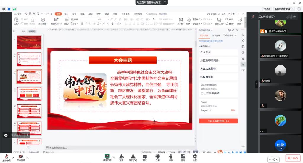 講座中,解老師從黨的二十大的主題,過去5年的工作和新時代10年的偉大變革,馬克思主義中國化時代化,新時代新征程中國共產黨的使命任務,堅持全面從嚴治黨等方面,對黨的二十大精神進行了詳細闡釋和解讀。講座認為,過去5年和新時代10年黨和國家取得了歷史性成就、發生了歷史性變革。黨的二十大報告科學謀劃未來5年乃至更長時期黨和國家事業發展的目標任務,提出了一系列新戰略、新思路、新論斷,是指導我們全面建設社會主義現代化國家、向第二個百年奮斗目標奮進的行動綱領。