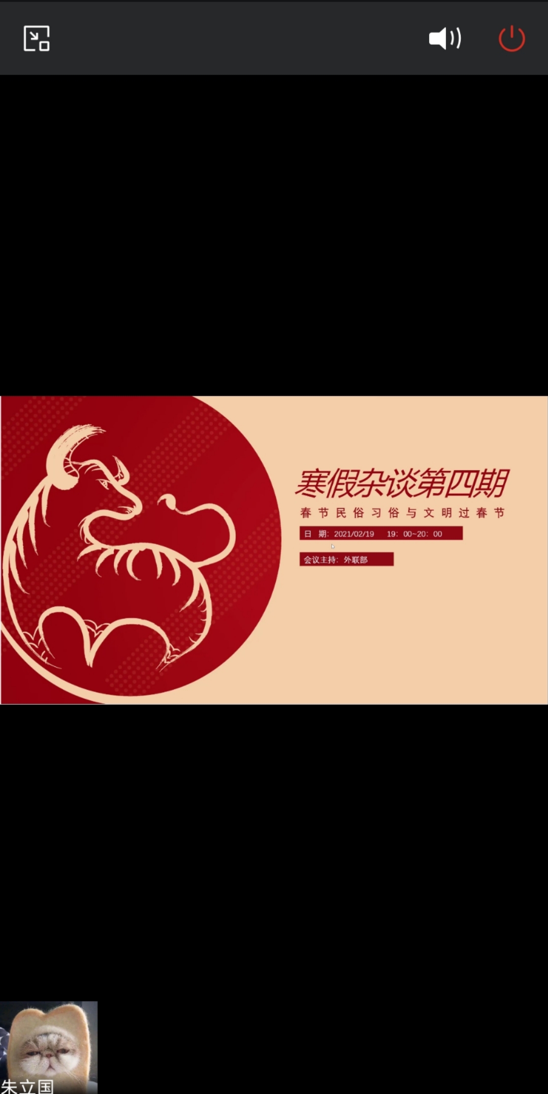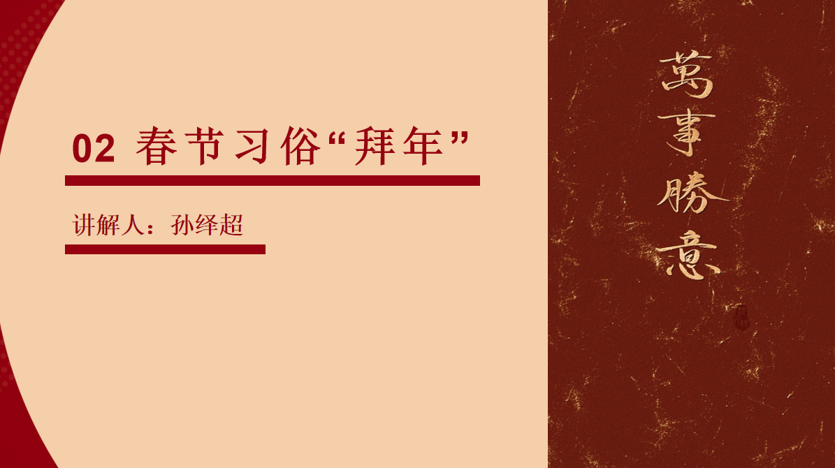 活動開始,由學生會外聯部同學進行簡單的開場介紹,而后同學們依次發言。大家從“年”的由來講到“拜年”的習俗,由年夜飯說到放鞭炮,還有山東地區過春節獨有的地域特色,以及古代和現代過年習俗的異同之處。同學們不僅分享了見聞,也展示了自己在寒假期間的攝影作品和此次過年的感受,最后還不忘提醒大家要遵守各地的疫情防控規定,文明過節。