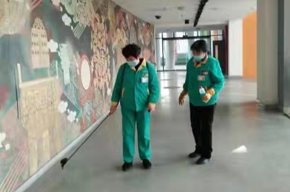 家住濟南長清的57歲的段耀美和53歲的黃秀芹是學校長清校區的保潔員工,日常負責辦公樓的清潔工作。平日里她們工作認真,待人熱情,經常得到教職工們的夸贊。這個假期,這對姐妹花主動放棄休假,第一時間加入到校園衛生防疫隊伍中。長清辦公樓的走廊上、電梯間、廁所里……經常看到她們戴著口罩,背著消毒用具,忙碌工作的身影。在管轄衛生區域,她們確保每日消毒、不留死角。當被問到工作累不累時,她們靦腆地笑著說:“確實比平常累一些。但我們住得近,我們多干點兒,遠路的同事就能安心在家過年!”