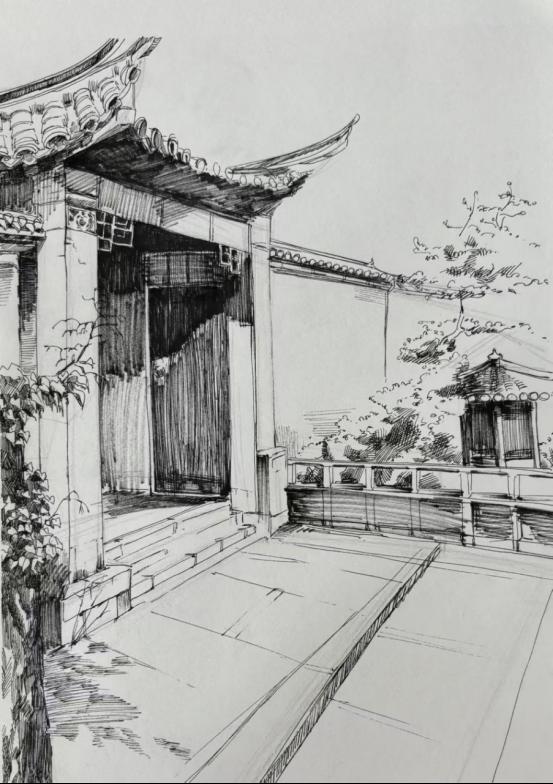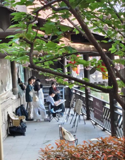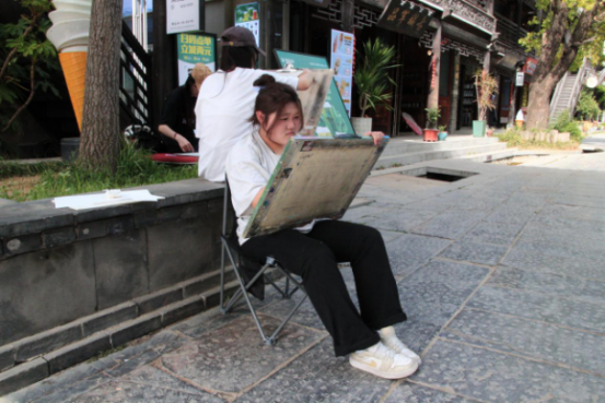 同學們體驗當?shù)氐泥l(xiāng)土風情,解鎖中國古建筑的魅力密碼。此情此景在同學們的筆下漸漸清晰;光影流轉的微妙變化、色彩碰撞的奇妙搭配,于畫布上徐徐呈現(xiàn)。每一次落筆,都是對自然的虔誠致敬,都是對藝術純粹的執(zhí)著追求。大家用心感受著這片土地的獨特魅力,讓藝術與生活完美交融,讓靈感在實踐中不斷迸發(fā)。