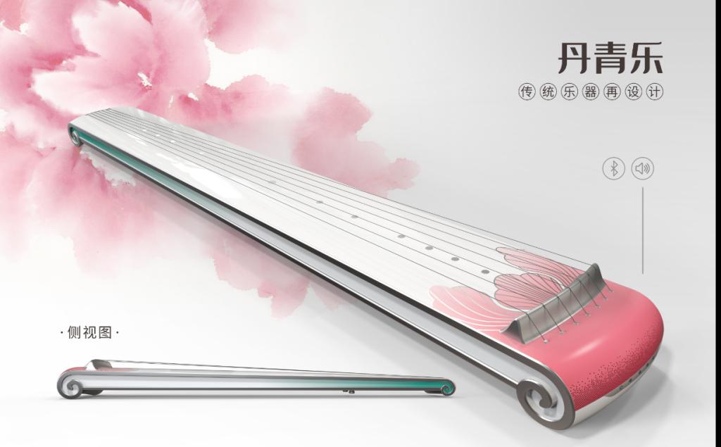 設計團隊在潘魯生的指導下,立足當地產業,突出當地“牡丹”品牌,對古琴、古箏、笙、琵琶、阮琴、二胡等傳統樂器進行再設計。再設計的樂器,在延續傳統泡桐材質與加工方式的基礎上,在產品中嵌入藍牙音響等錄音播放設備,產品局部融入牡丹元素,突出地域文化特征,并從牡丹中提取色彩要素,呈現出潔凈鮮明,簡潔時尚的視覺特征。