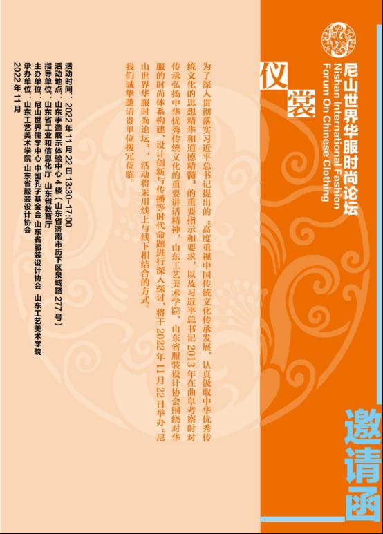 黨的二十大報告提出,以社會主義核心價值觀為引領,發展社會主義先進文化,弘揚革命文化,傳承中華優秀傳統文化,滿足人民日益增長的精神文化需求。為了學習宣傳貫徹黨的二十大精神,傳承中華優秀傳統文化,挖掘華服深層次文化內涵,推動華服產業發展,“尼山世界華服時尚論壇”將于2022年11月22日在線上線下同時舉行。