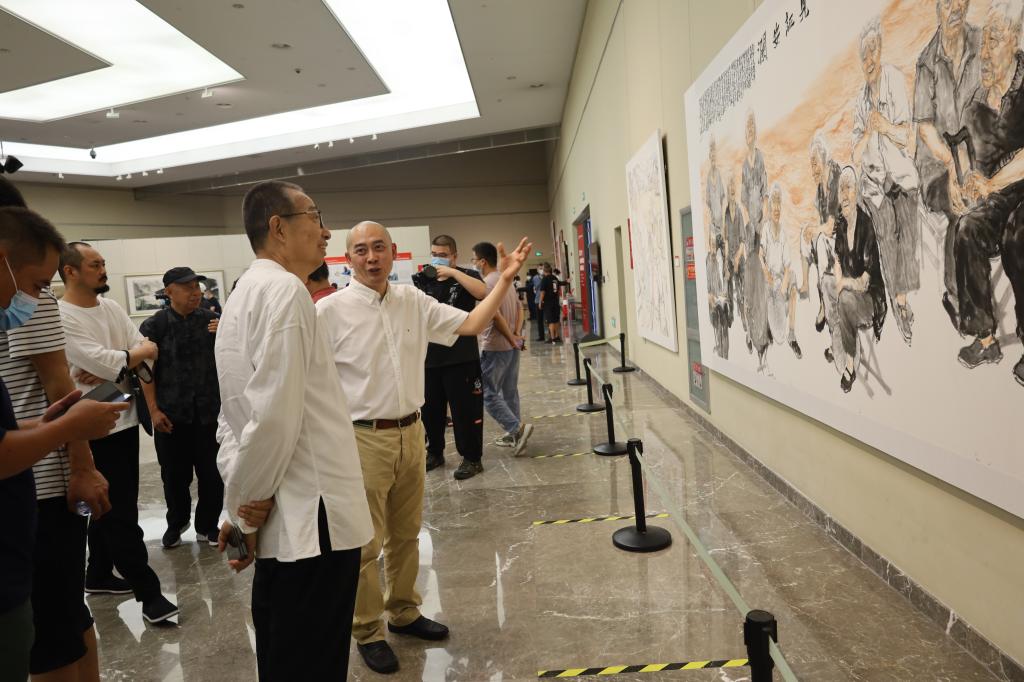 開幕式上,潘魯生與中央文史研究館副館長、中國文聯十屆副主席、中國美協名譽主席馮遠,中國國家畫院院委、中國美協理論委員會副主任張曉凌,山東省政協原副主席翟魯寧,山東省政府原秘書長蒿峰,北部戰區陸軍原副政委張建華,江蘇省軍區原副司令員、少將田厚玉,山東省人大常委會委員、科教文衛委員會主任王紅勇,山東省委宣傳部副部長、山東省電影局局長程守田,山東省文聯黨組成員、副主席矯紅共同啟動展覽。